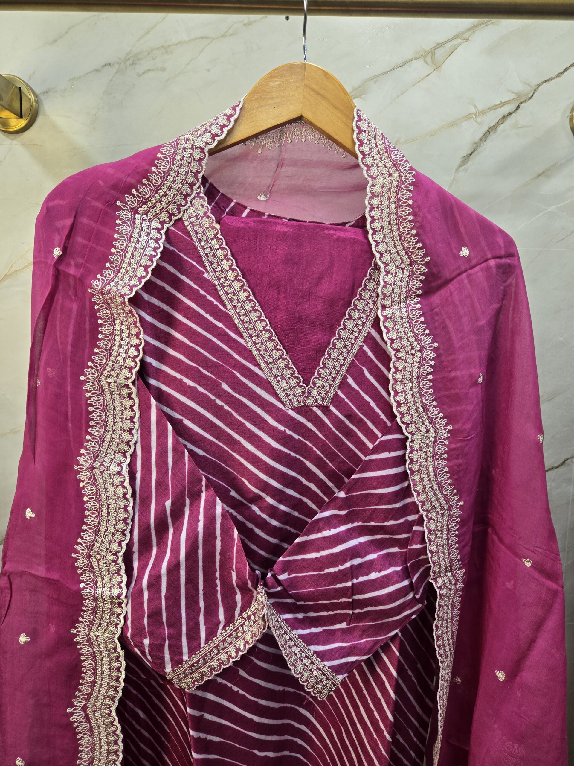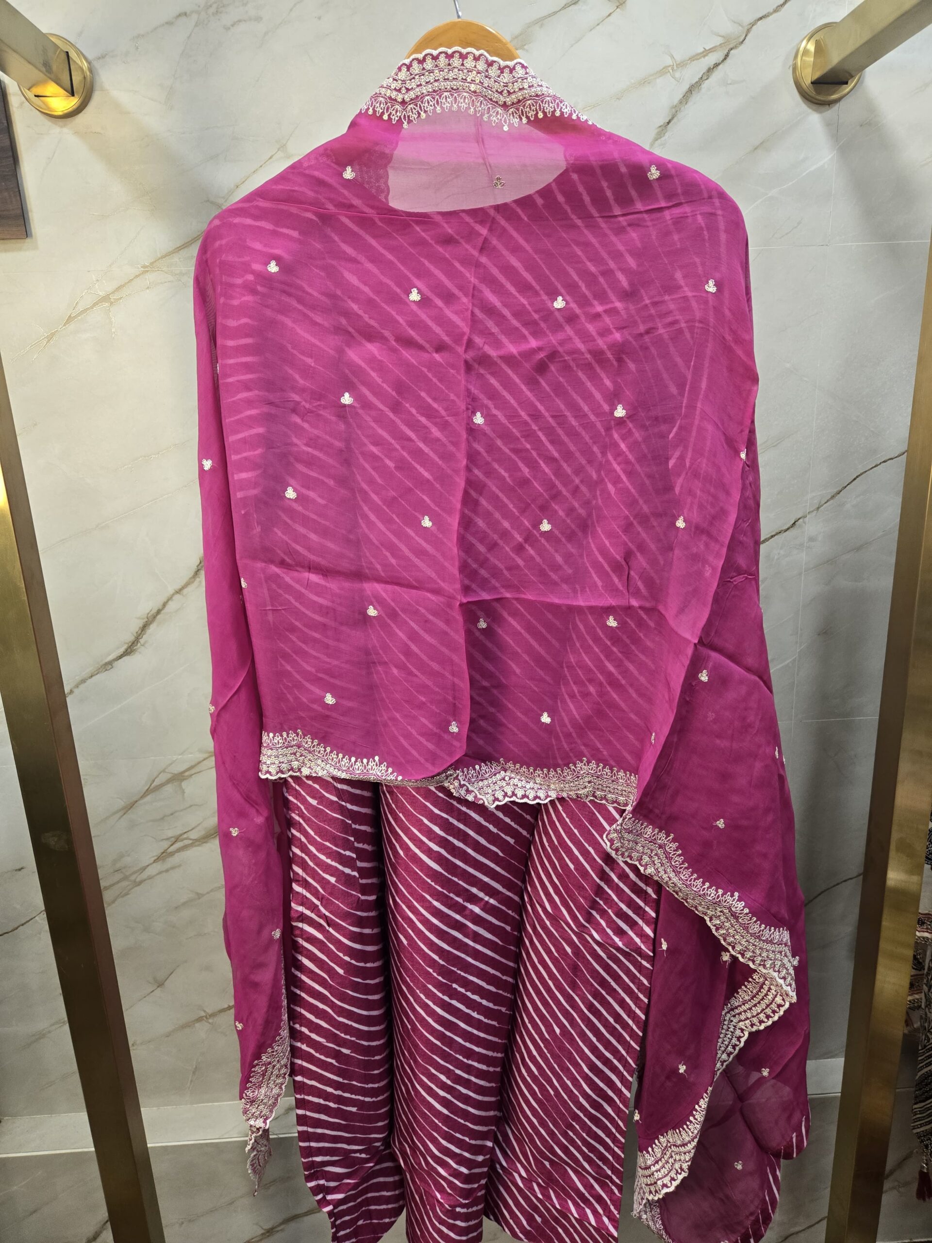 Embrace refined elegance with our pink Russian silk suit set, crafted to perfection for a graceful and timeless appeal. The outfit showcases a beautiful V-neckline enhanced with delicate embroidery, complemented by a matching embroidered dupatta that adds a touch of sophistication. Made from premium Russian silk, the ensemble offers a smooth, lustrous drape and unmatched comfort. Ideal for festive occasions, celebrations, or elegant gatherings, this set perfectly balances traditional craftsmanship with modern charm.colour may be vary due to lighting.